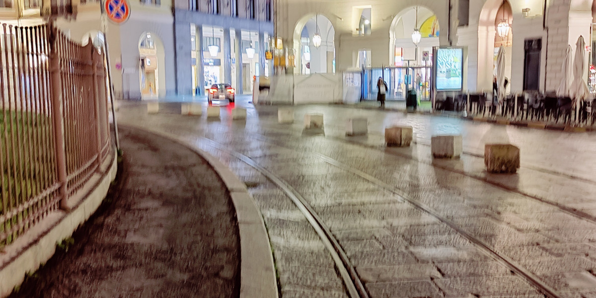 Nous avons déjà eu l'occasion de prendre le tram à Turin. Cette fois-ci notre séjour est trop court. Mais c'est remarquable qu'ils aient conservé ces rails sur une place qui a l'air (mais n'est pas) conservée telle quelle depuis le début du XXème.