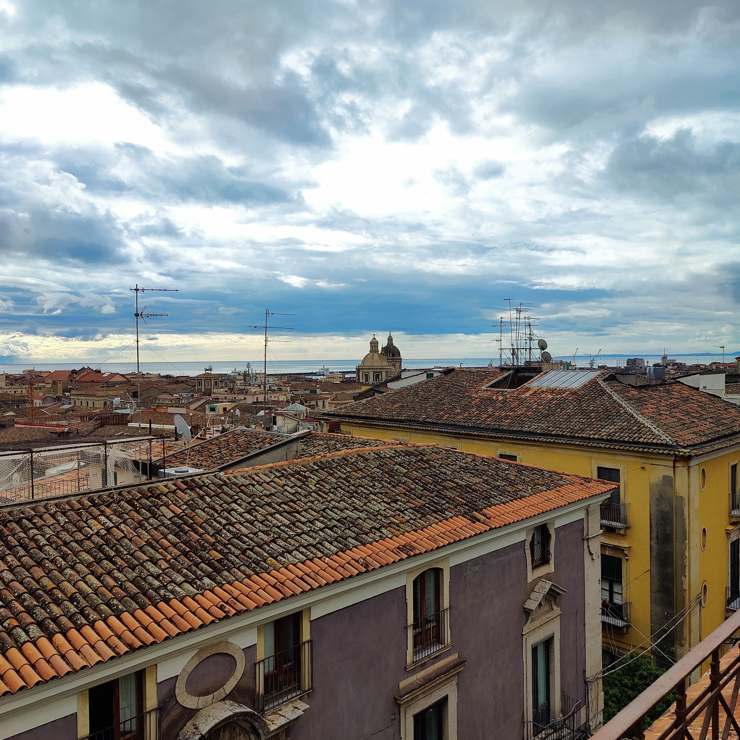 La vue depuis le balcon de notre premier hébergement, à Catane.